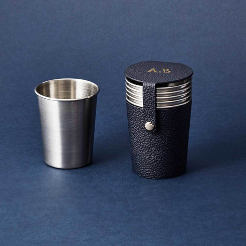 We've created the ultimate accompaniment to your travels and expeditions with our luxury milled leather case containing 4 stainless steel tumblers. This leather tumbler set makes for a beautiful gift which you can make to feel even more special with our in-house monogramming service. Whether it's celebrating a milestone or reminiscing over a date or nickname - create something special for sipping and savouring on-the-go.