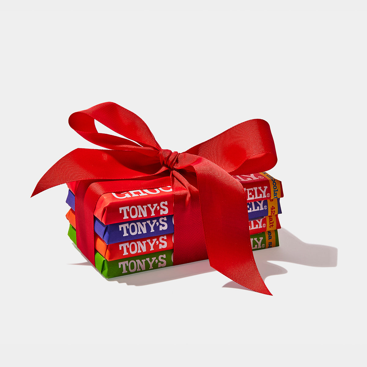 Treat yourself to four of the finest from everyone's favourite chocolatiers Tony's Chocolonely who are committed to fully fair trade. Tied in a ribbon, we'll send you or a sweet toothed friend 4 or 8 of our favourite flavours. Share with caution - experience suggests that once these packs are cracked open, they don't stick around for long.