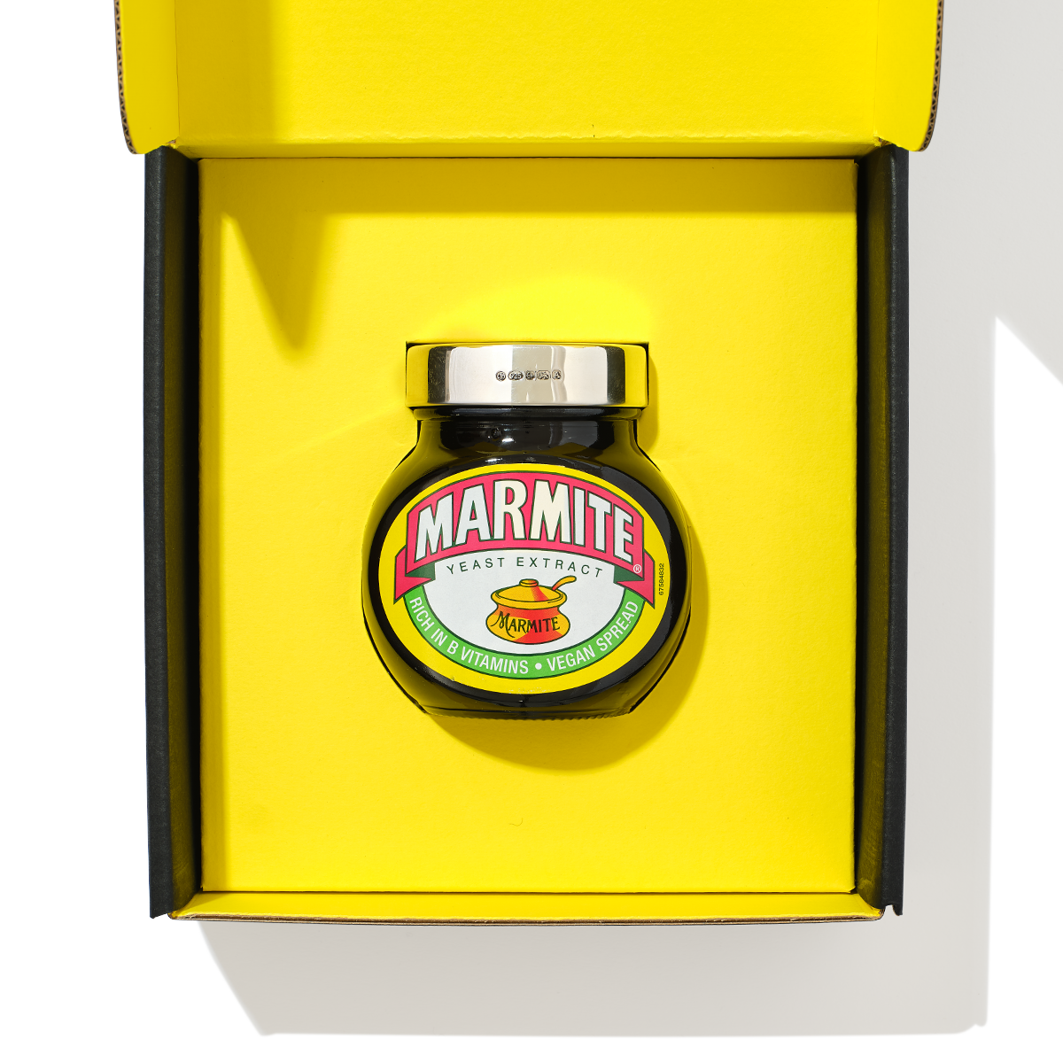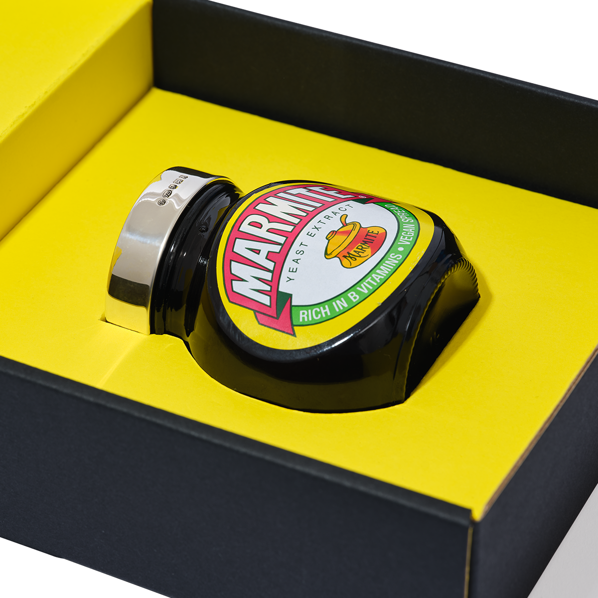 A Sterling Silver lid to fit a 250g jar of either loving or loathing - yes, it's Marmite. Handcrafted in Birmingham's prestigious silver quarter, each 250g Marmite lid is stamped with British Assay hallmarks and can be personalized with a name, date, or special message. The ultimate present for the person who has everything or to elevate your own condiment collection. The lid comes on a Marmite jar and can be transferred to a new jar once the first one is empty.