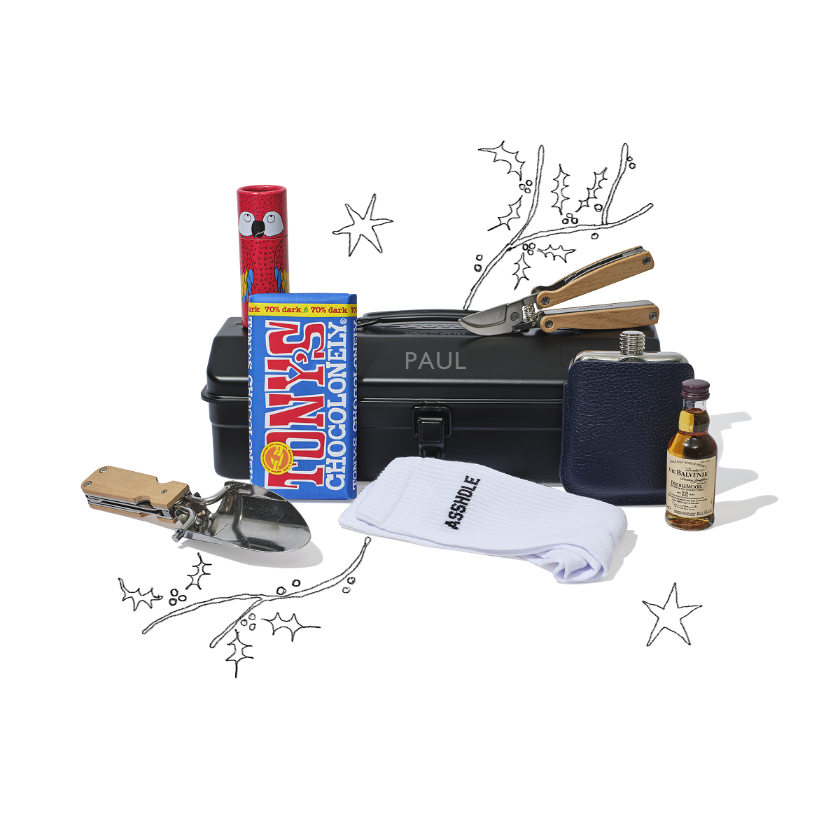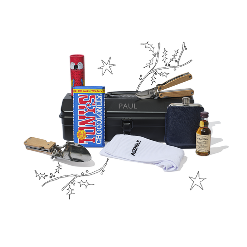 Whether you pick an engraved toolbox or embroidered tote filled with all his favourite treats, you'll be celebrating him in all his glory with our Build Your Own Hamper. Get creative with our hamper, from upgrading his gardening tools to treating his feet to a fresh pair of socks, or indulging his sweet tooth with a bar of Tony’s Chocolonely, he'll cherish every personal touch in this hamper, hand-picked by yours truly.