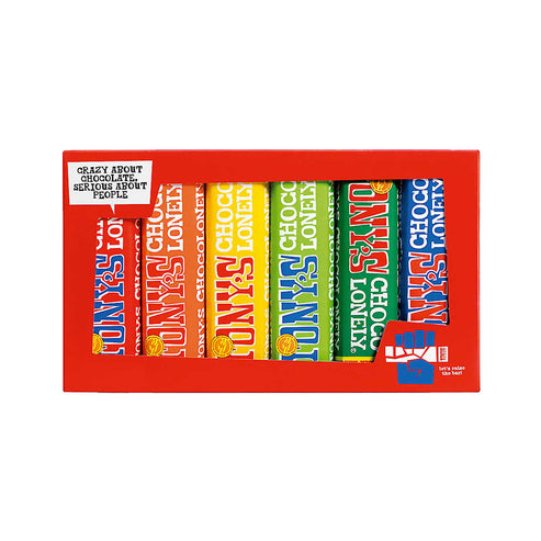 Treat yourself to a taste of the rainbow with Tonys Chocolonely's Rainbow Tasting Pack! This assortment of Tonys' finest chocolate is sure to be a great gift!