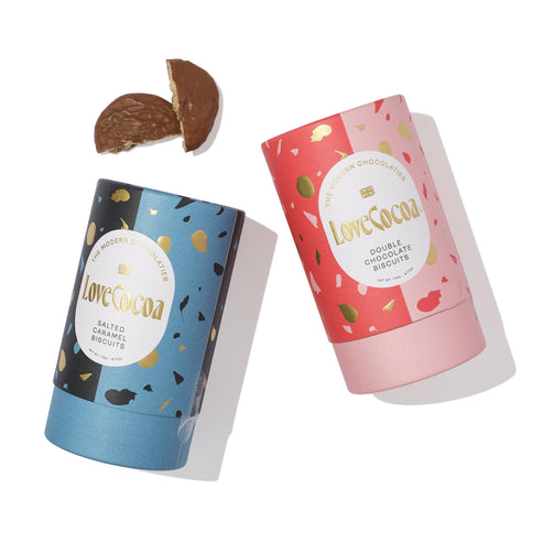 Crafted by hand in the UK using ethically sourced ingredients, these deliciously moreish biscuits are filled with milk chocolate or slated caramel chunks and encased in a velvety milk chocolate shell. Perfect for dipping into a warming mug of hot chocolate, they’re housed in an elegant tube that’s ideal for gifting.