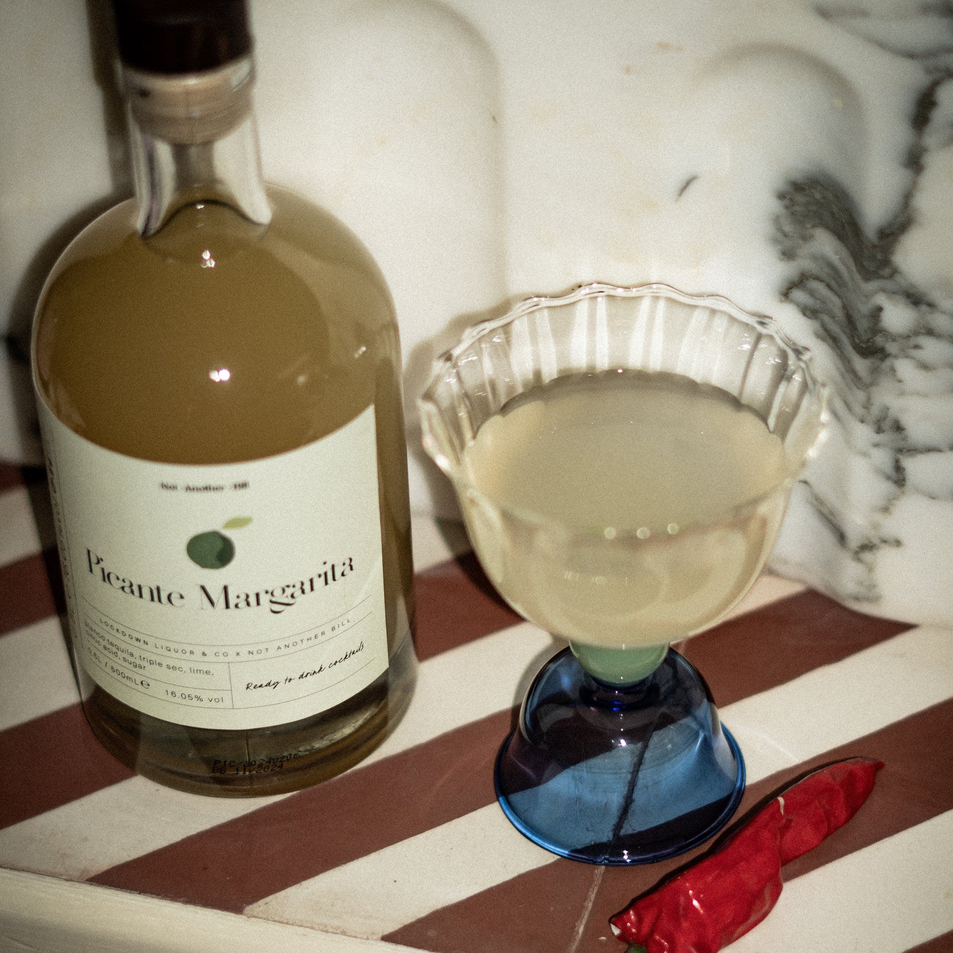 - Picante Margarita: Reposado Tequila, Lime, Agave Nectar, Chilli