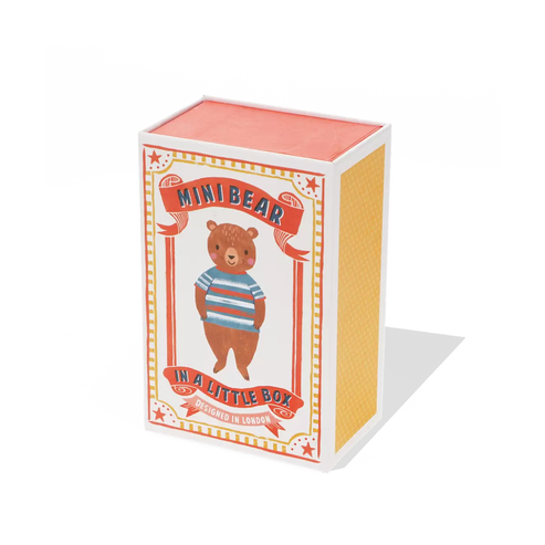 This adorable bear comes in a sturdy box designed like a vintage matchbox. Children can tuck up their new companion, then shut him away safely for the night. This ritual can also become part of an evening routine for little ones, to help them understand bedtime.