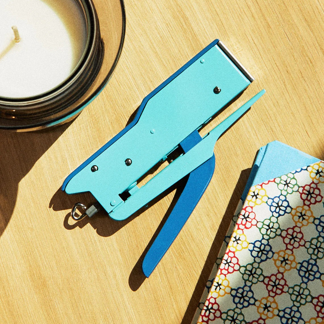 In 1924, two families Balma and Capoduri started manufacturing staplers in their original town of Voghera, an hour outside Milan. Hand-crafted in steel, they became a symbol of endurance and timeless office style. The Zenith 548 blue stapler pairs function with distinct design in this striking version with nickel-plated brass.