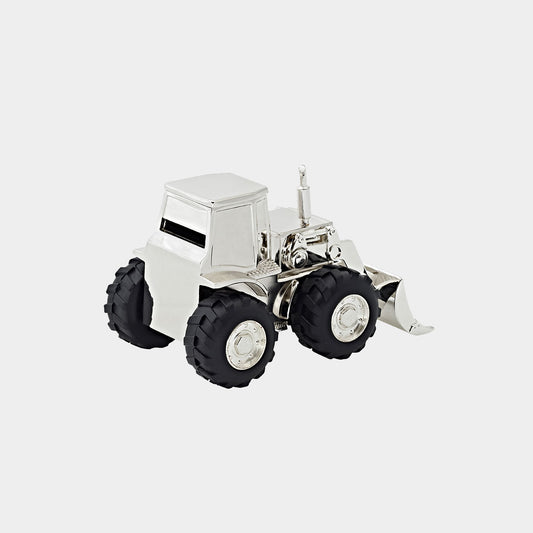 Silver Tractor Piggy Bank