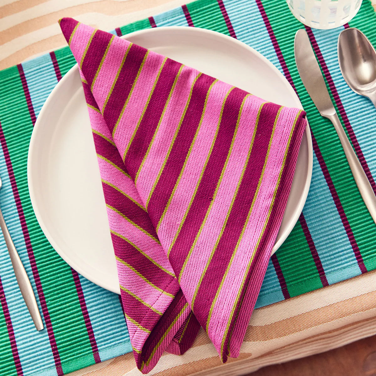 Add a pop of color and playfulness to your table with Dusen Dusen's Stripe Napkin Set, featuring 4 contrasting colours and made from 100% cotton twill they make the perfect addition to spring tablescaping.