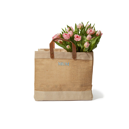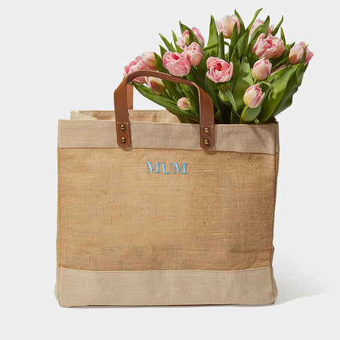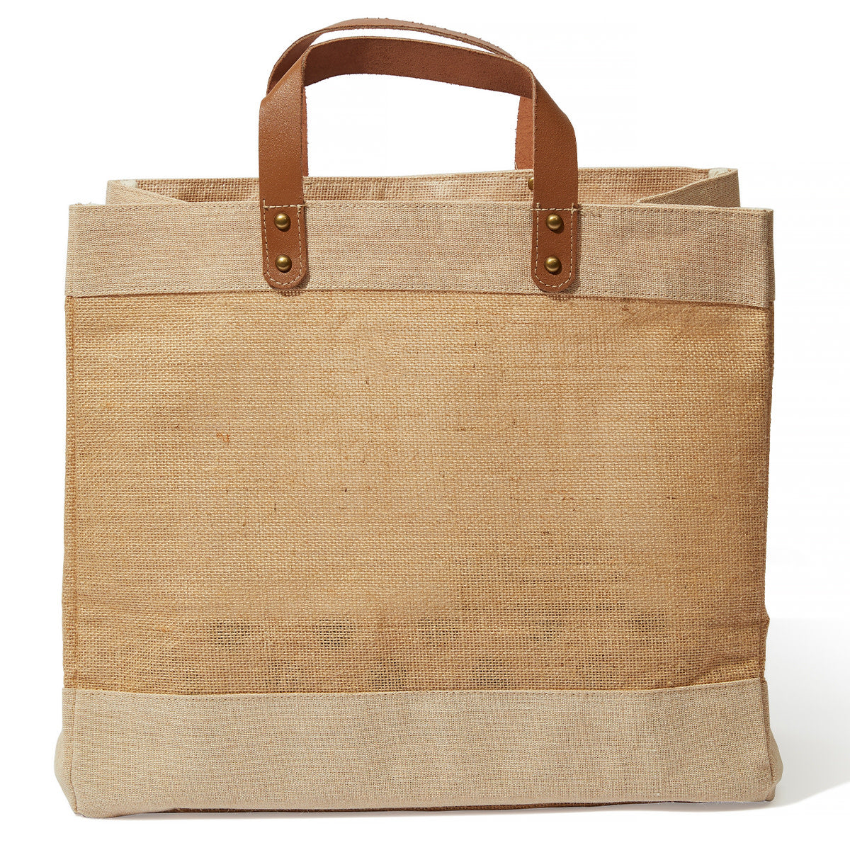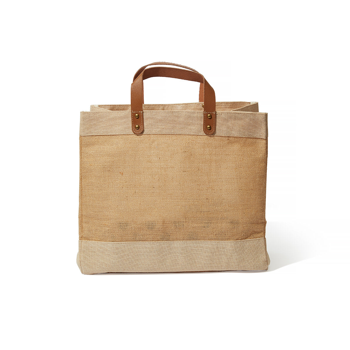 Our premium hessian tote bag has decorative leather handles and brass hardware. Sturdy and roomy, this bag is ready to house anything from your daily groceries to your laptop.