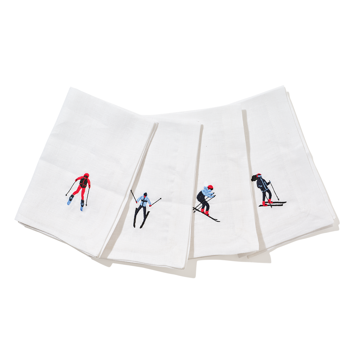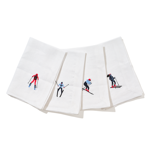 Designed for ski lovers, our set of napkins feature playful motifs that capture the spirit of the Alps. Each design is thoughtfully created in-house at Not Another Bill. The perfect post-holiday thank you gift, which add a touch of mountain charm.