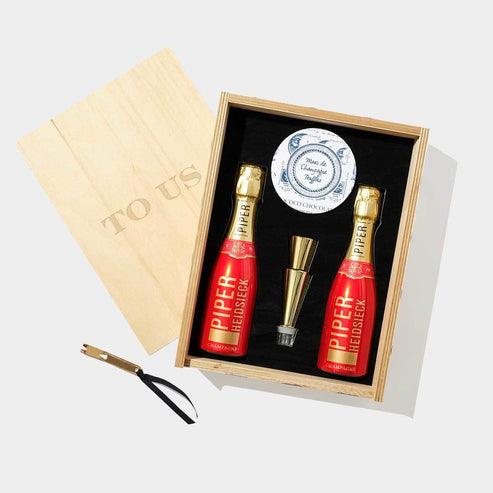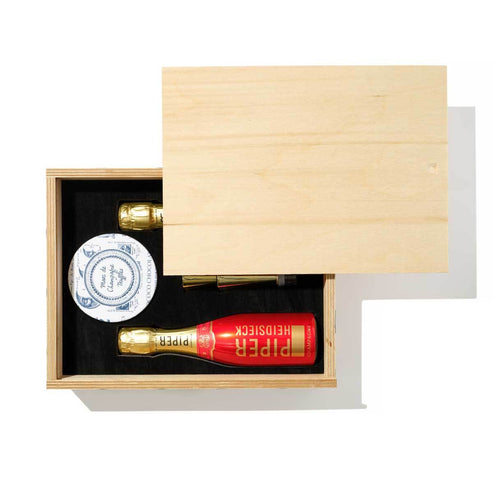 - Includes: 2x Piper (20cl), a box of Rococo truffles and 2x champagne sippers.
