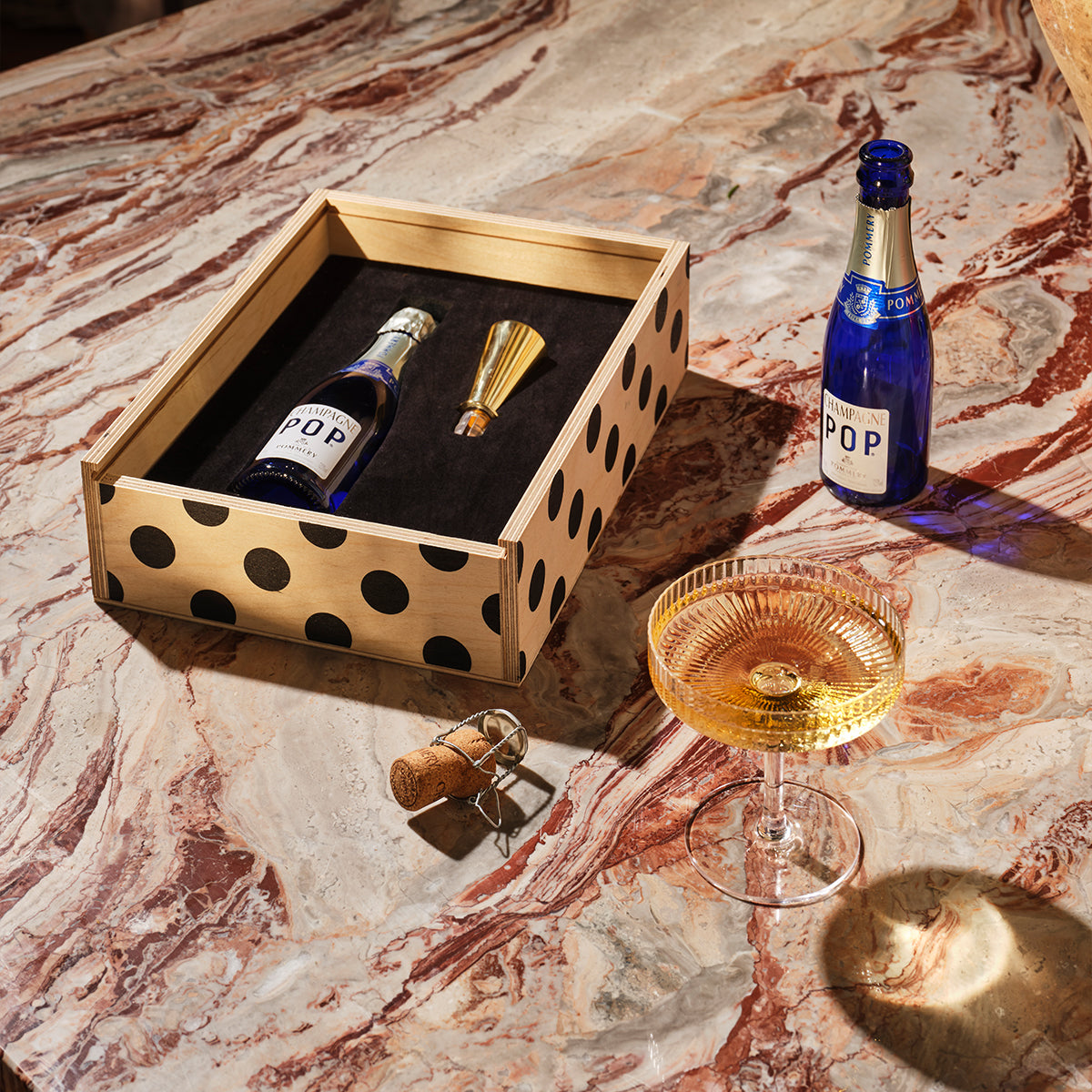We offer champagne by Moet as well as Pommery Pop and Piper Heidsieck