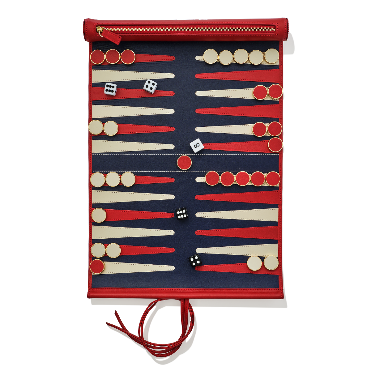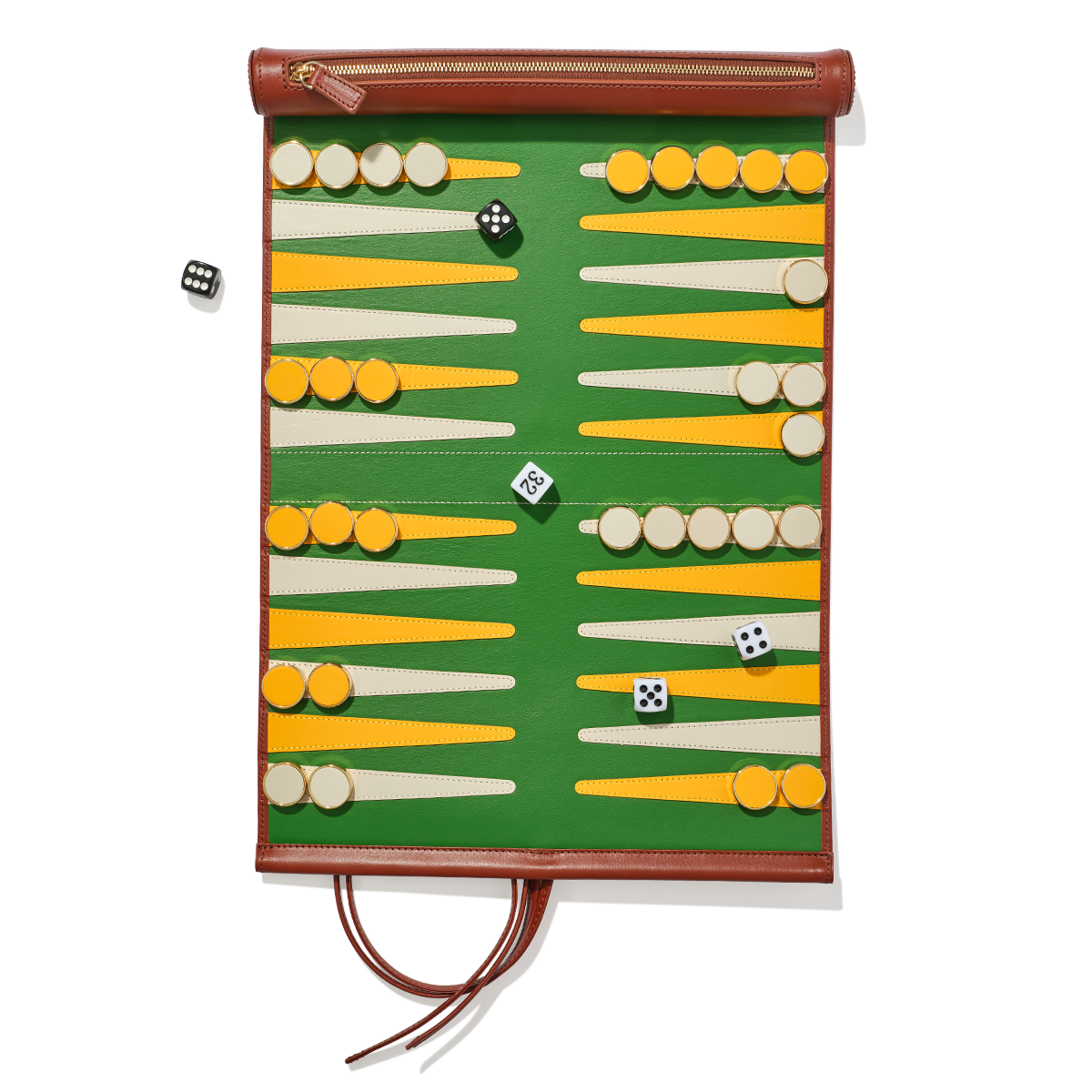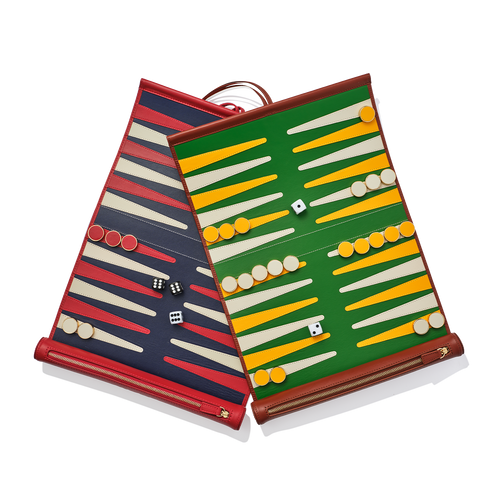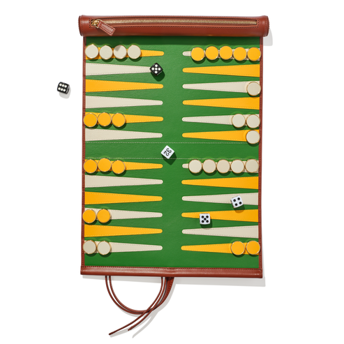 A classic game with a travel-ready twist - our backgammon set brings friendly competition wherever you go. Crafted from genuine leather and built to last a lifetime, each set rolls up neatly to fit into your suitcase or carry-on and includes counters and dice for play on the go. For a personal finishing touch, add monogrammed initials to the exterior of the roll.