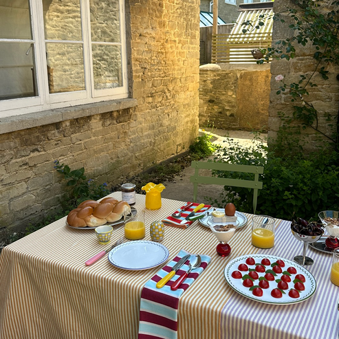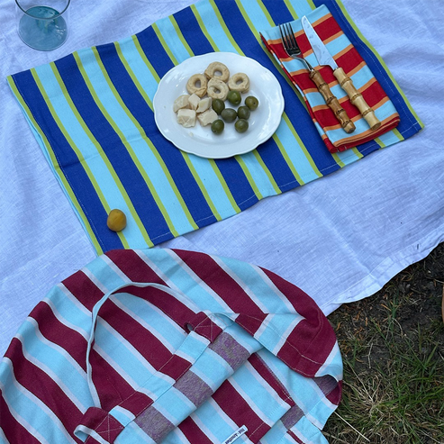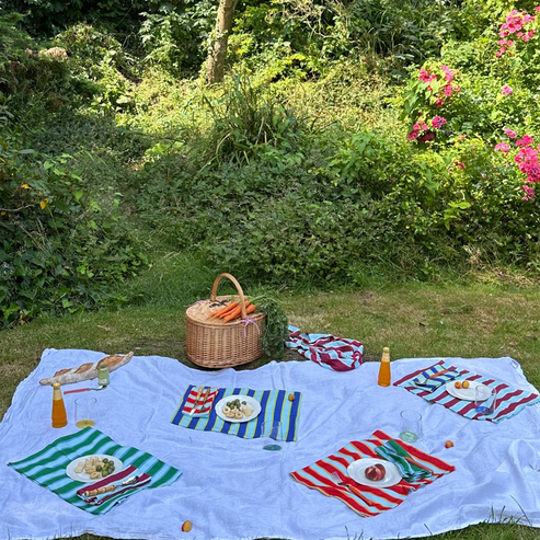 Featuring vibrant colours and playful stripes, our new linen collection is the perfect way to bring a cheerful touch to your supper parties and picnics alike. Pair with our matching tea towels & aprons for an extra special gift.