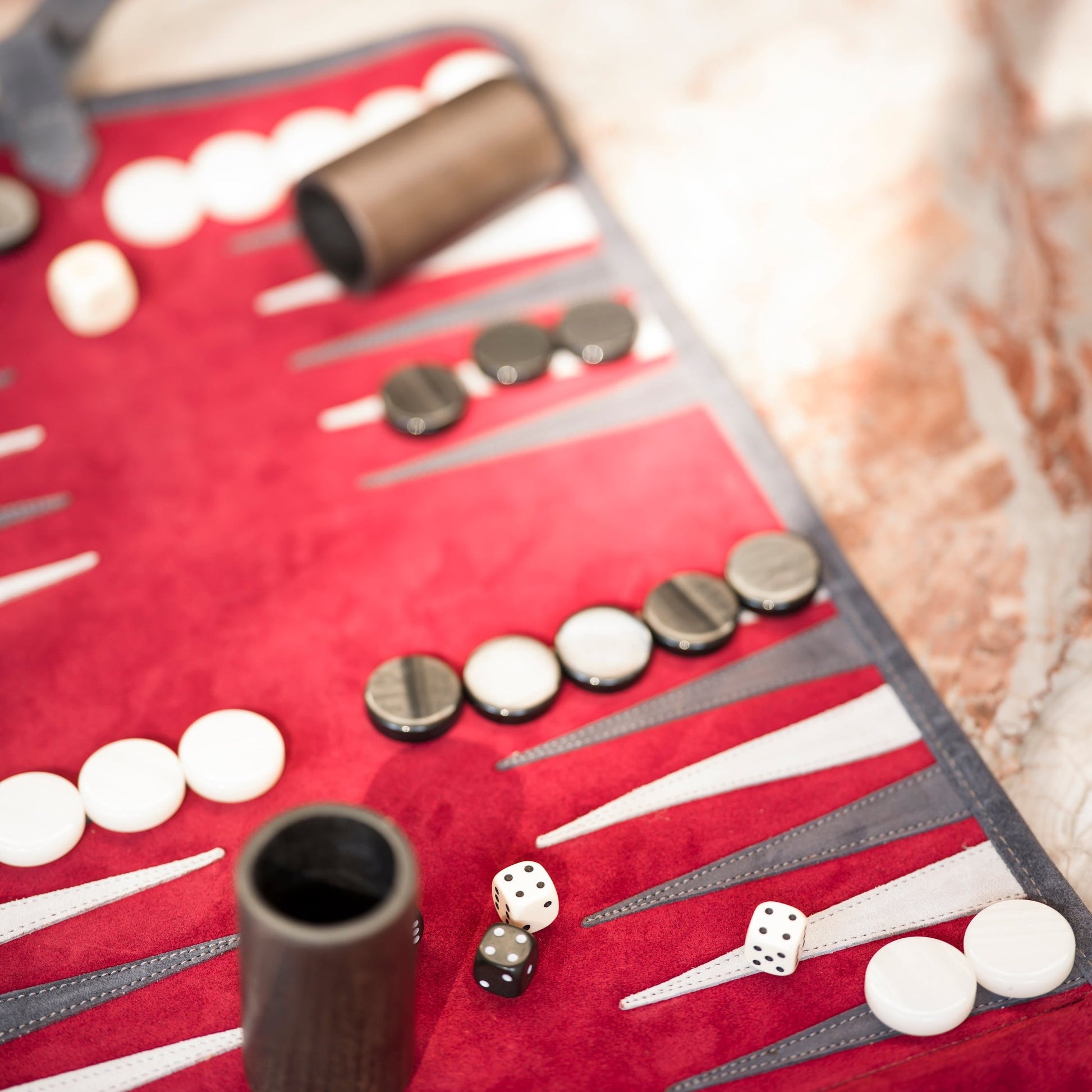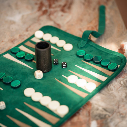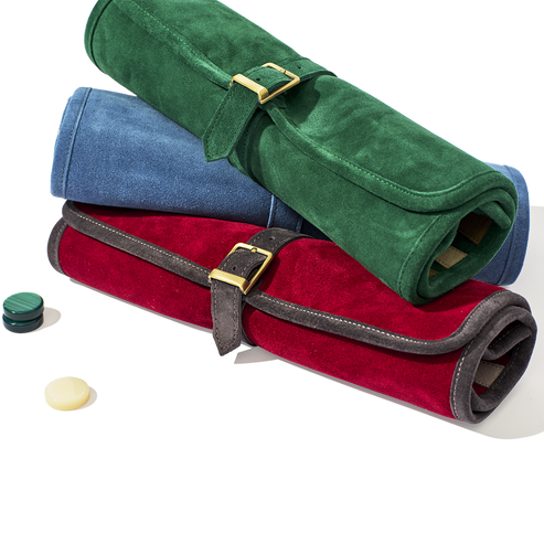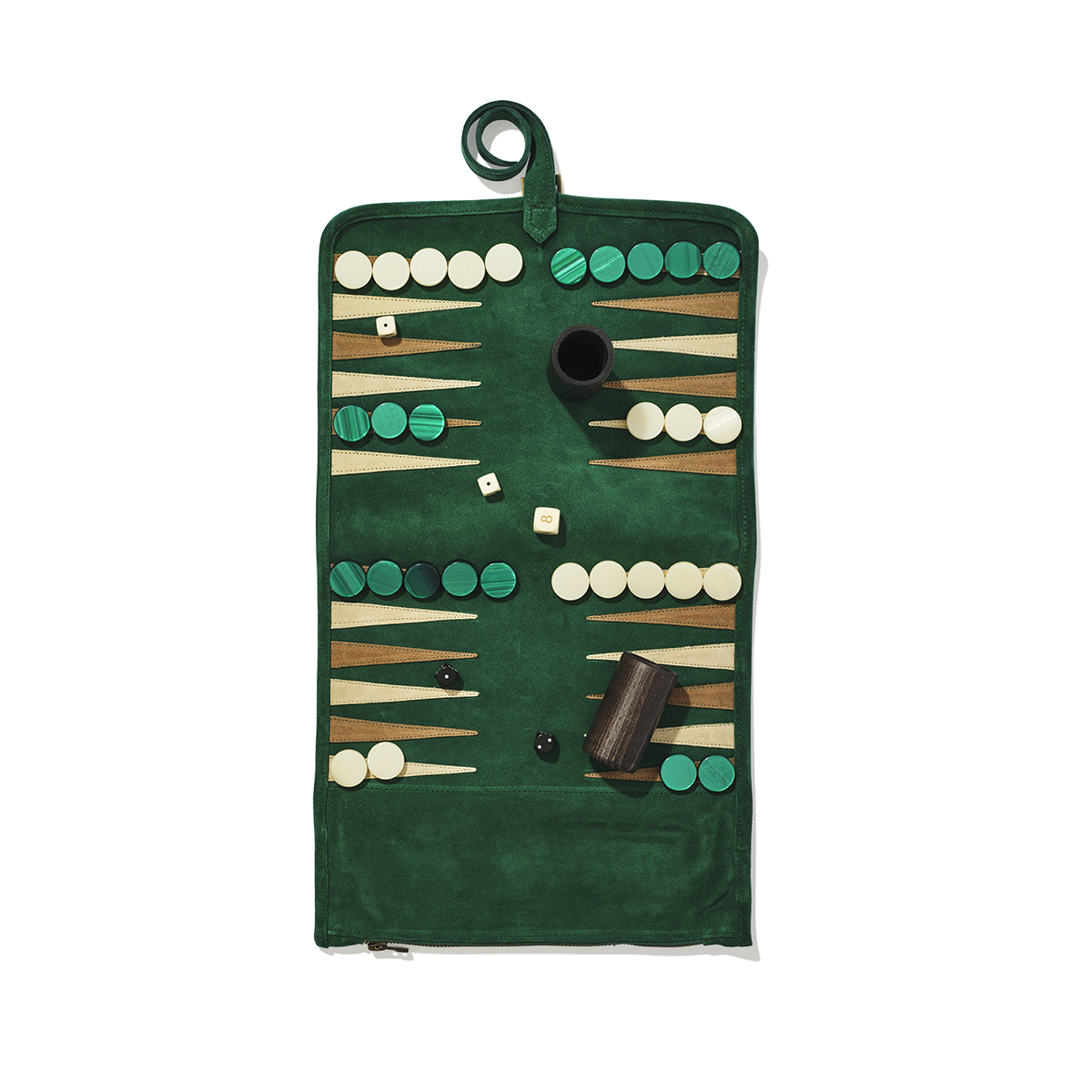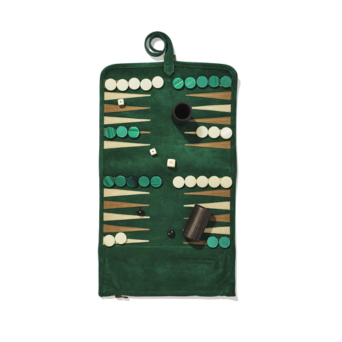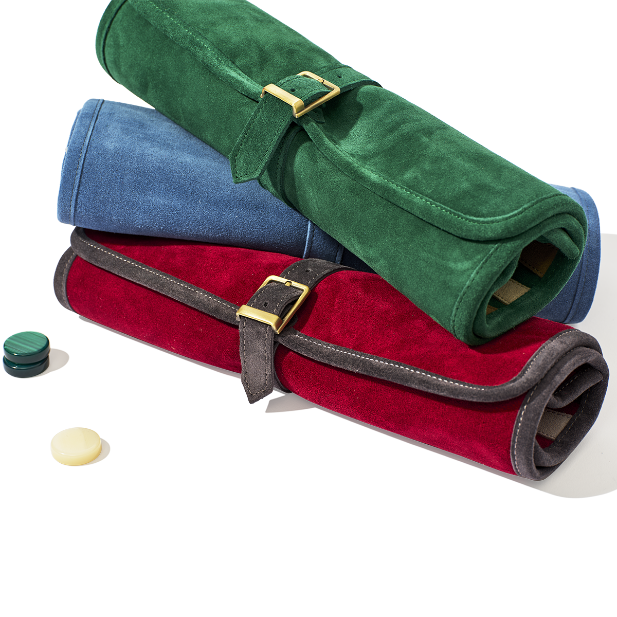 Beautifully crafted from genuine suede to the highest quality standards, the board unrolls to reveal contrasting top-stitched leather playing points. A handy zipped storage section keeps your counters and dice secure while on the move.