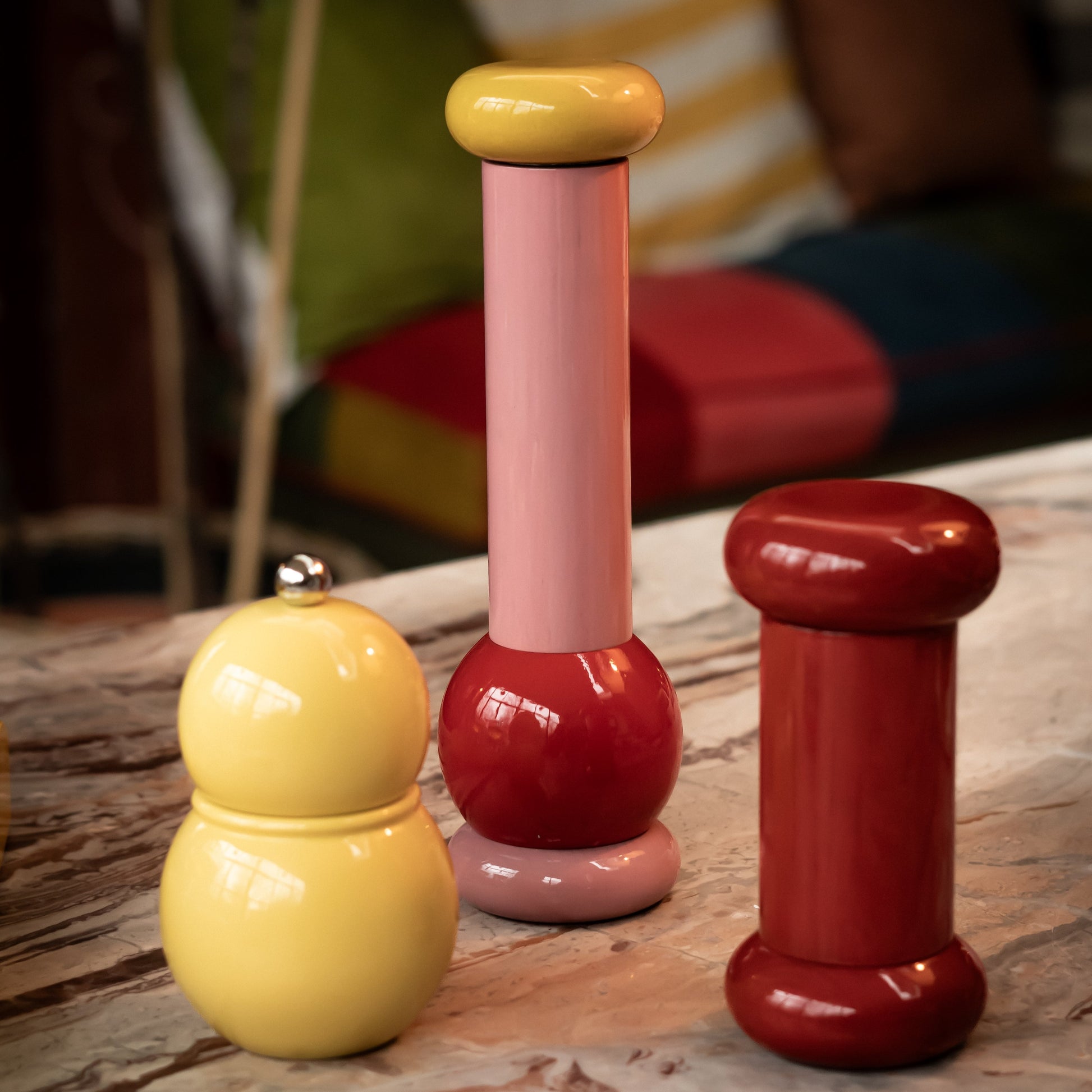 Designed by Ettore Sottsass, these colourful salt, pepper and spice grinders are an indispensable tool for table and kitchen purpose. It is produced with particular attention to sustainability: made in FSC-certified wood guaranteeing an eco-sustainable origin and coloured with water-based and totally solvent-free paints that are sustainable.