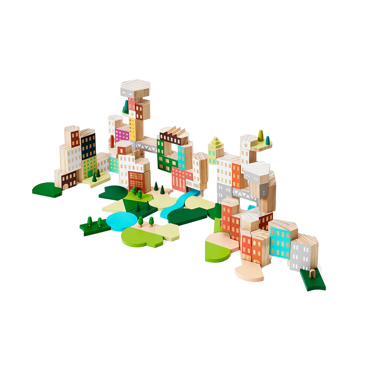 - Set includes 74 wooden pieces