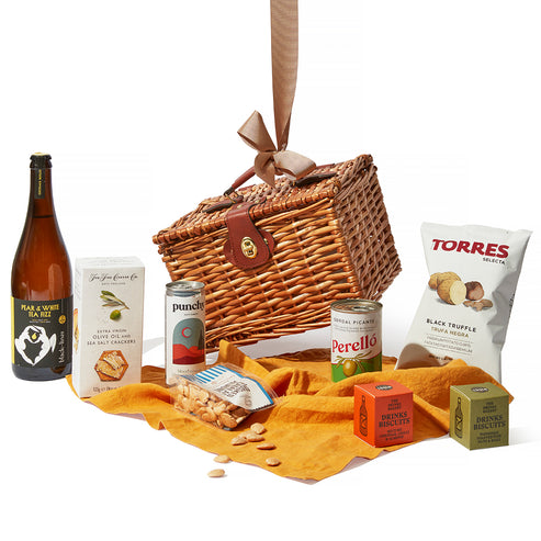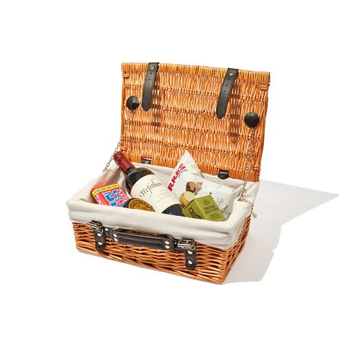 Personalise and fill your own hamper with a selection of premium snacks, ready-to-drink cocktails, cheese, crackers, and wine. Add luxurious extras like bottle openers, napkins and picnic blankets. Our team will expertly pack your items into the packaging of your choice, which can be embroidered with a name or special date.