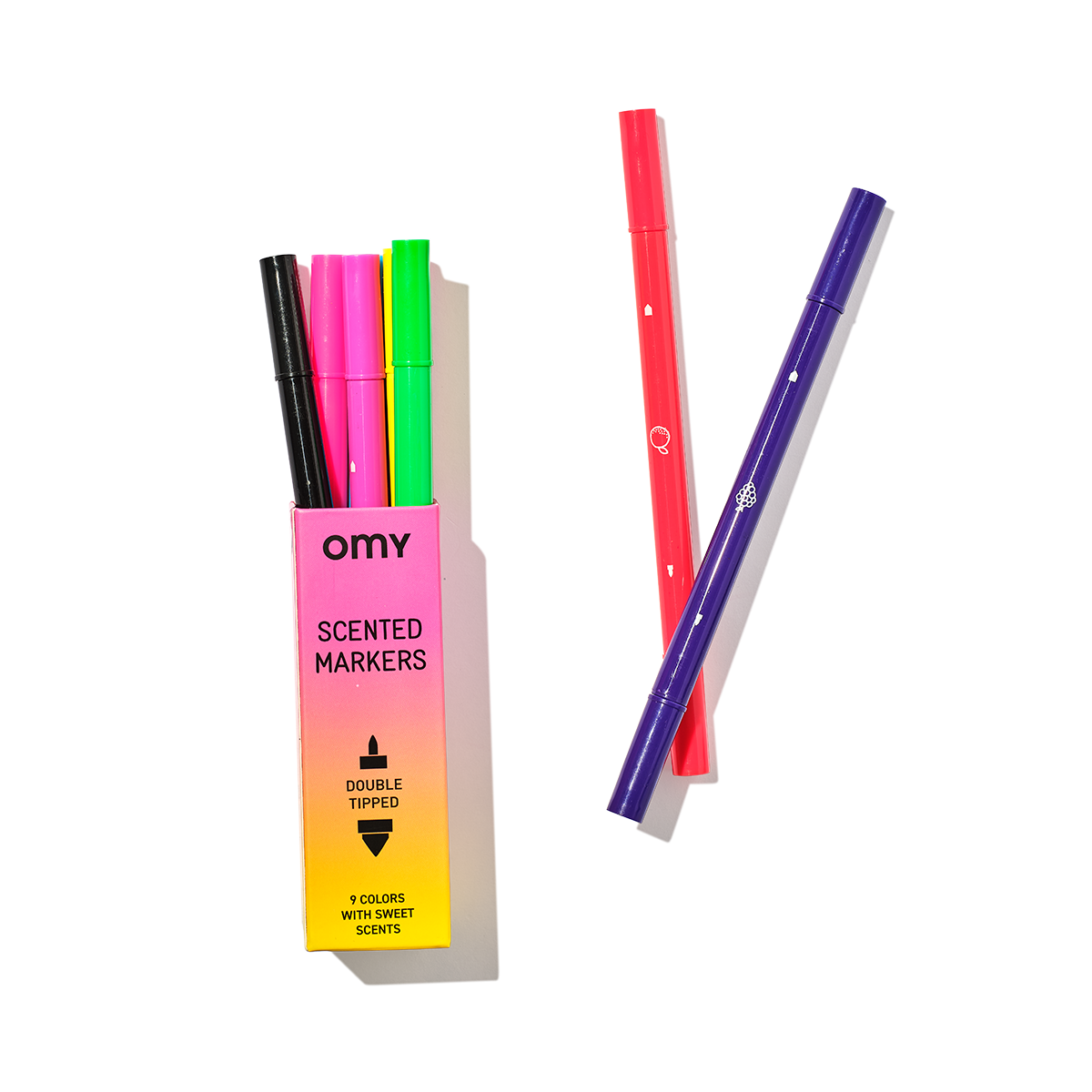 - Flavours: Apple, Strawberry, Cherry, Peach, Grape, Blackberry, Orange, Lemon and Cola. 9 double-tipped felt-tip pens: 1 fine, 1 broad.