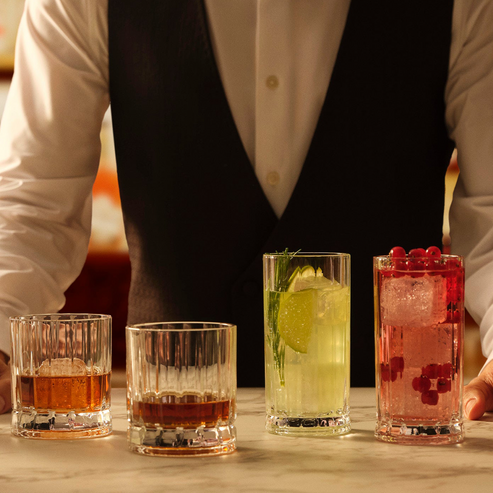 For the discerning whisky connoisseur, this set of four NUDE Wayne whisky glasses is the perfect gift. Crafted with precision, each glass features distinct cuts and intricate overlays that highlight the clarity and brilliance of crystalline glass. These elegant tumblers pair beautifully with a bottle of rare whisky and stainless steel ice cubes for a refined and memorable gift.