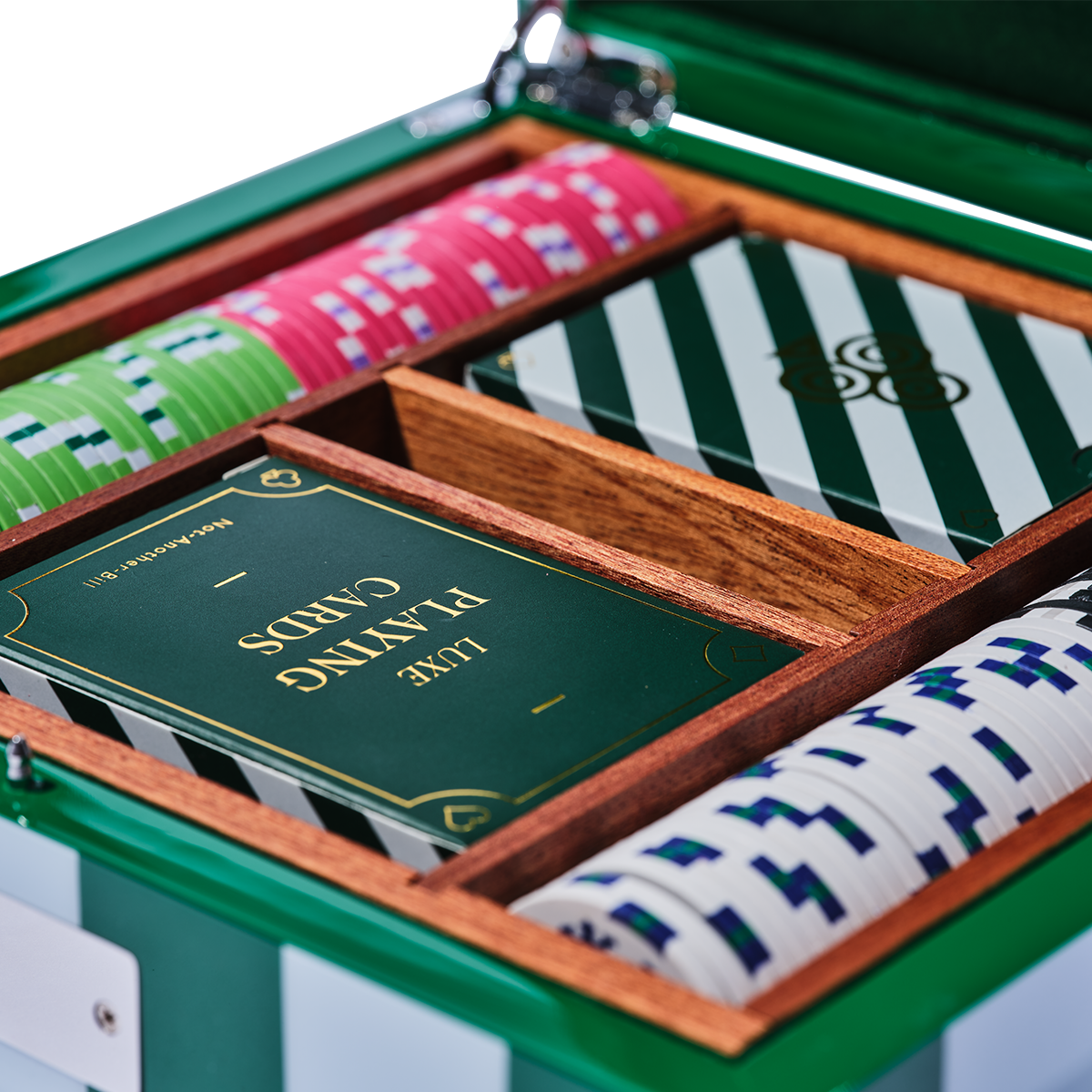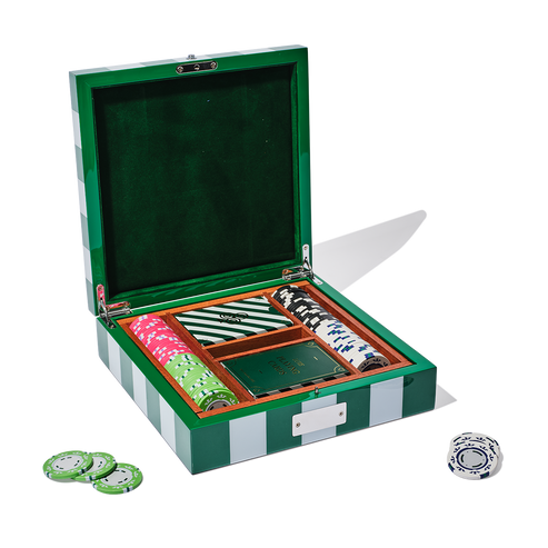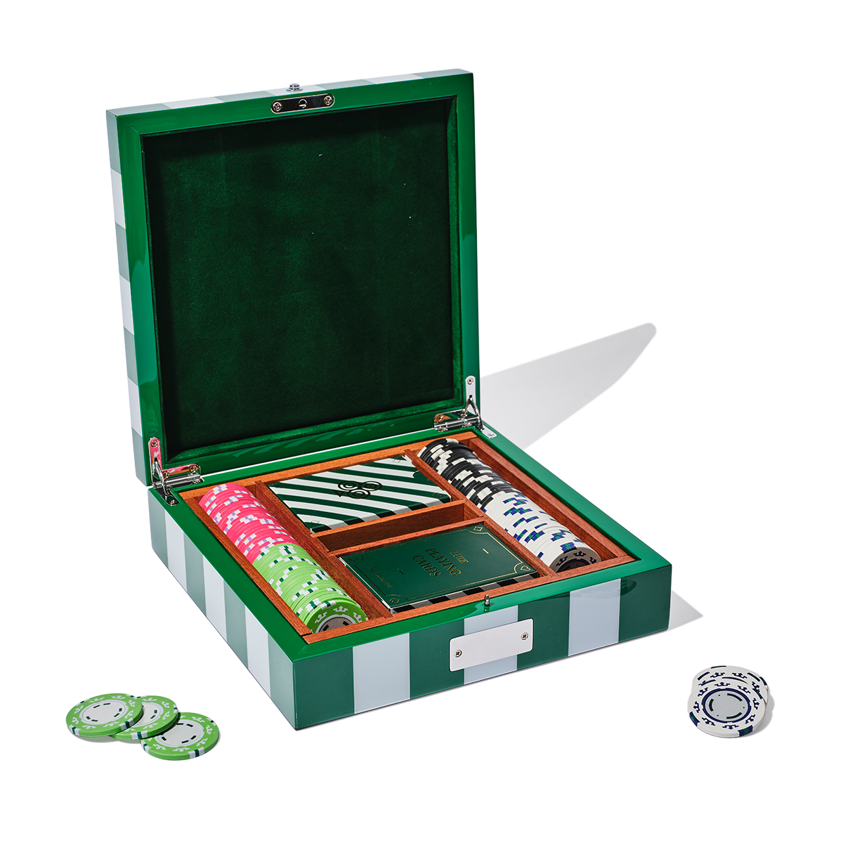 Make a bold statement on games night with our Lacquer Poker Set, housed in a high-gloss case topped with a striking checkerboard pattern. The velvet-lined interior and thoughtful craftsmanship elevate every hand you play. Both functional and decorative, it makes an exceptional gift for game lovers and design enthusiasts alike.