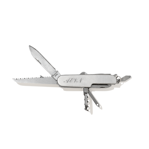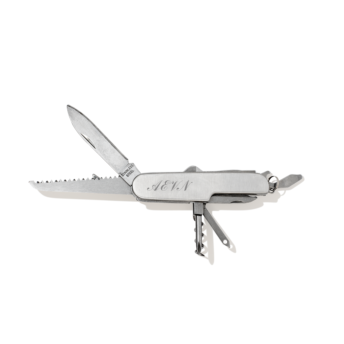 Crafted from durable stainless steel, this refined pen knife brings together over ten precision tools in a slim, pocket-ready design. Its polished finish and considered engineering make it an everyday essential you’ll reach for without thinking. Engrave it with a name or initials for a quietly personalised touch.