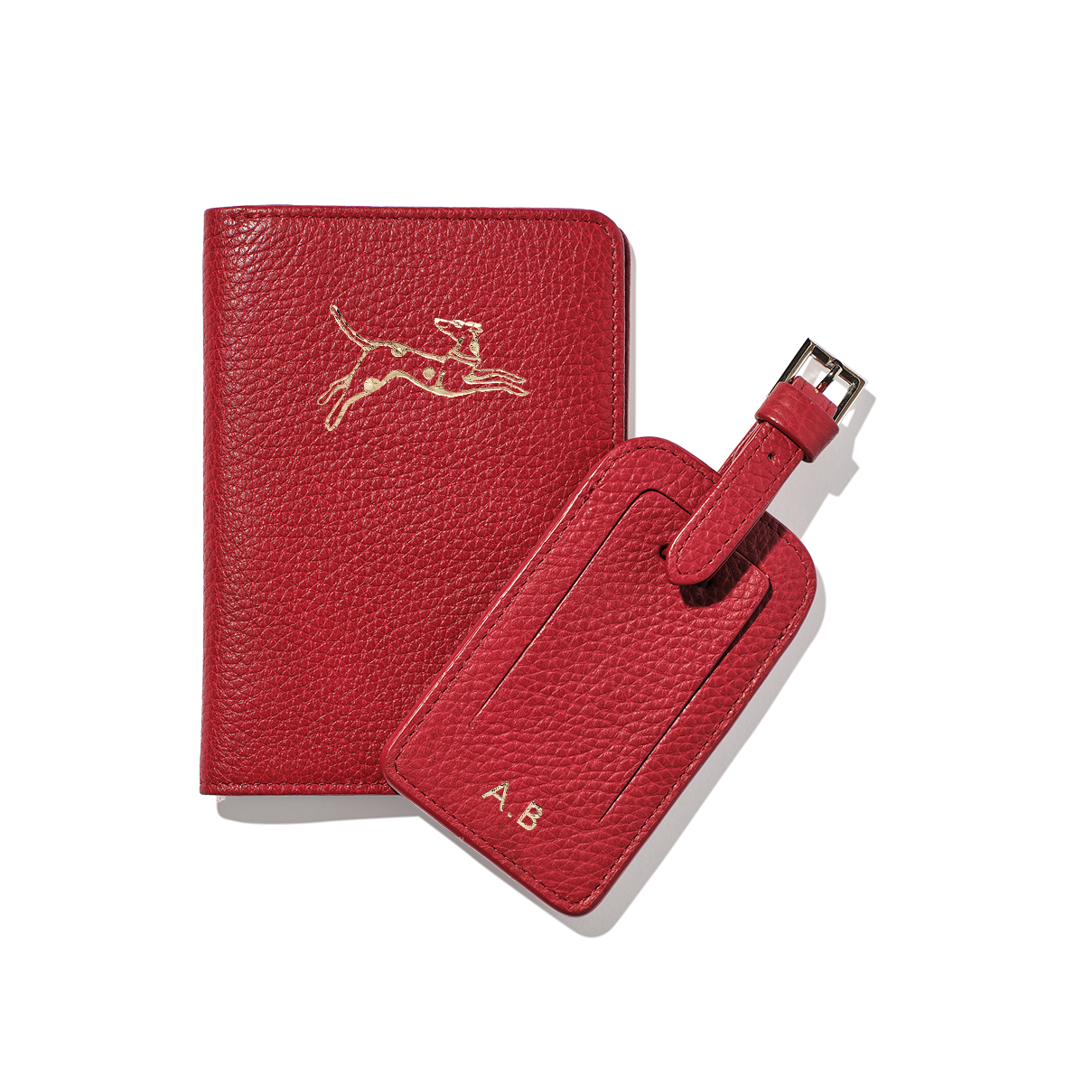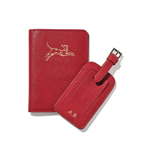 Give the gift of wanderlust with our stylish passport and luggage tag set. Personalised with their initials or a phrases, this set adds a touch of elegance to every journey. It's the perfect gift for the frequent traveler or the dreamer planning their next adventure. Made with buttery soft pebble grain leather our passport folio features a secure zip pocket, slots for multiple cards and a suede-lined central compartment.