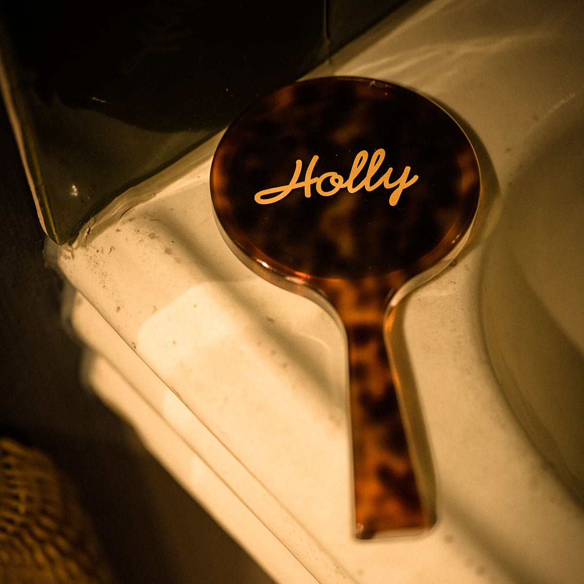 What's missing from your self-care routine, you ask? This tortoiseshell mirror has your name written all over it – literally. Personalise in gold, silver, blue or rose.