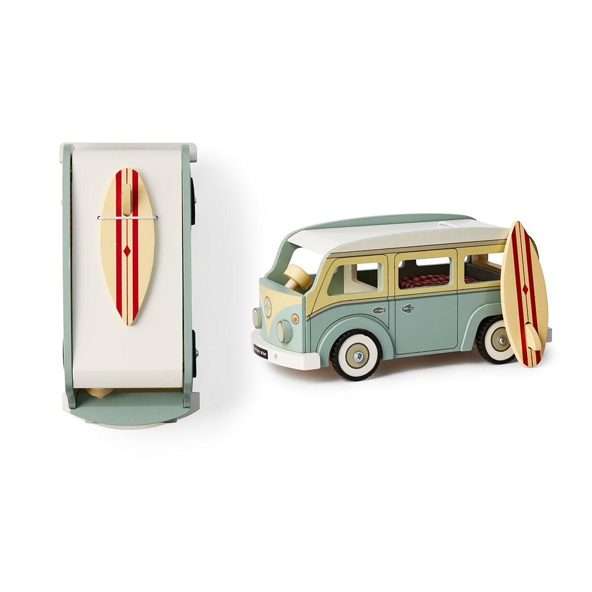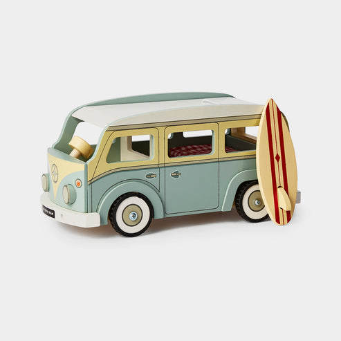 This gorgeous Le Toy Van Wooden Holiday Campervan features a surf board, a padded mattress and a removable roof. Better yet, you can personalise the roof with name or initials so everyone knows who it belongs to!