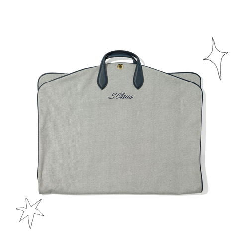 Upgrade your travel game with our stylish garment bags, crafted from high-quality woven canvas. This practical bag features handles for effortless carrying and an eyelet that can accommodate your hanger. The bag's woven cotton canvas and leather trim create a sophisticated look. What's more, you can add personalisation – such as a name, initials or even a memorable date.