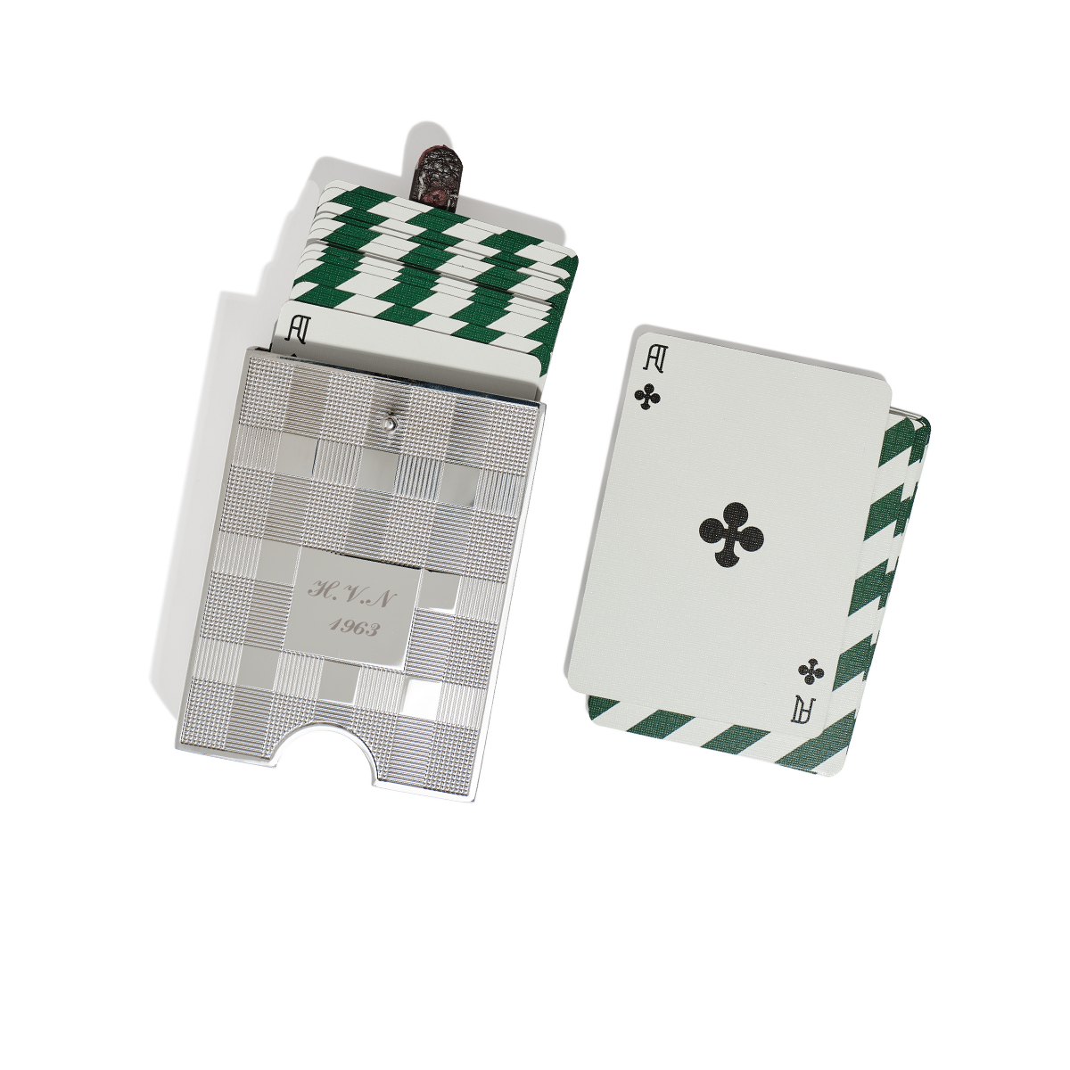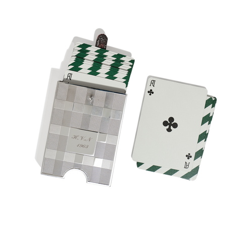 Beautifully crafted in polished stainless steel, this playing cards case is designed to elevate every shuffle and deal. Its textured checkered finish adds a classic touch, while the interior keeps your deck perfectly protected. The front engraving panel offers space for initials or a meaningful inscription, creating a truly bespoke piece. A timeless gift for card enthusiasts and collectors alike.