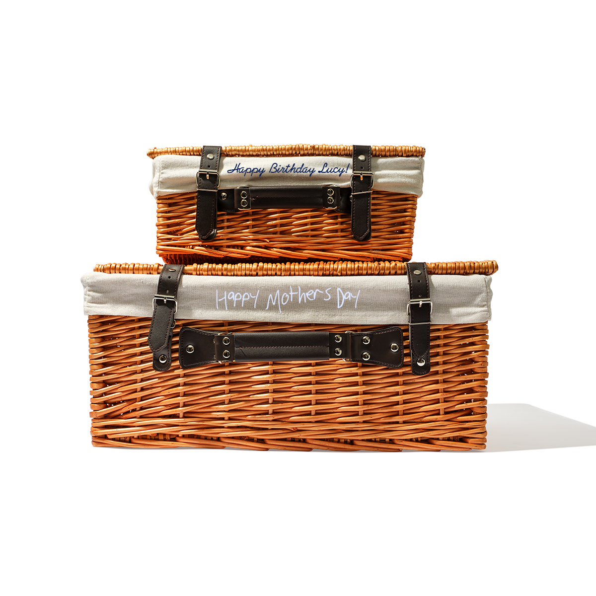 For a truly unique unboxing experience, select one of our wicker hampers and add a personalised embroidered message to the lining.